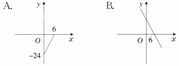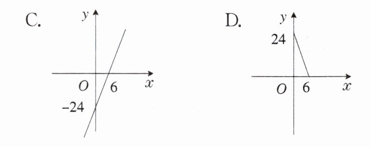 3. 拖拉机开始工作时,油箱中有油 $ 24L $,若每小时耗油 $ 4L $,则油箱中的剩油量 $ y(L) $ 与工作时间 $ x(小时) $ 之间的函数关系对应的图象是(