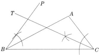 2. 如图,在 $\triangle ABC$ 中,用圆规和无刻度直尺在 $AB$ 上方作 $\angle PBA= \frac{1}{2}\angle C$。(保留作图痕迹,不要求写作图过程)
