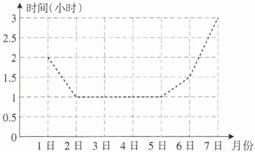 9. 如图是小芹 $ 4 $ 月 $ 1 $ 日 $ \sim 7 $ 日每天课外体育锻炼时间统计图,则小芹这七天平均每天的课外体育锻炼的时间是