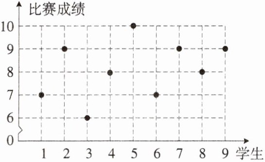8. 某中学举办了以“智能时代,智赢未来”为主题的 $ AI $ 科普知识竞答比赛(共 $ 10 $ 道题,每题 $ 1 $ 分)。已知选取了 $ 10 $ 名学生的成绩,但在记录时遗漏了一名学生的成绩。如图,这是参赛 $ 9 $ 名学生的成绩,则这 $ 10 $ 名学生成绩的众数不可能是(