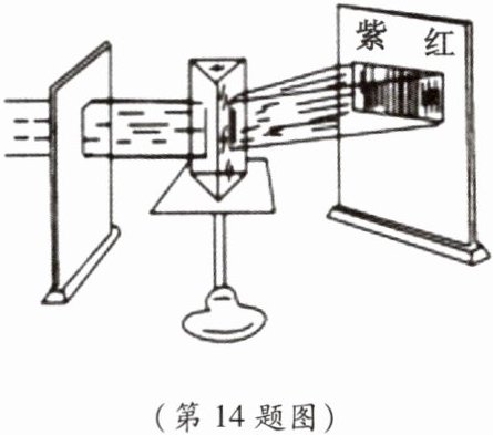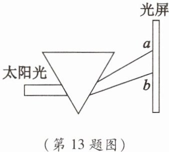 13. 如图所示,一束太阳光通过三棱镜照射到光屏上。