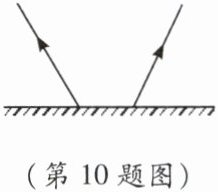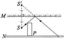 10. 如图所示,请利用平面镜成像的规律确定光源 S 的位置,并完成光路图。