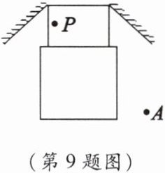 9. 如图所示,司机在倒车时通过后视镜能看到右后方的行人 A,P 点是司机的眼睛,请你画出司机看到 A 点的光路图。