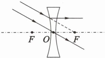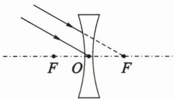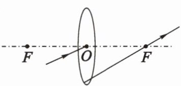 解析:入射光线与主光轴平行,则折射光线过凸透镜焦点;过光心的光线经凸透镜折射后传播方向不改变。延长线过另一侧焦点的光线经凹透镜折射后将平行于主光轴射出,过光心的光线经凹透镜折射后传播方向不改变。