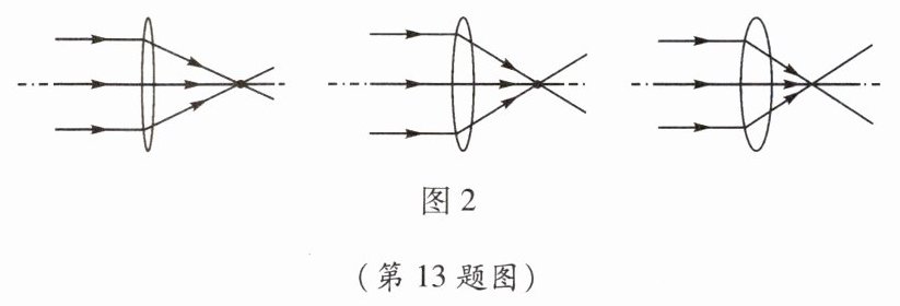 13. 小梦有3个凸透镜,它们用同种材料制成,形状如图1所示。