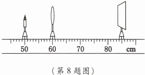 8. 在“探究凸透镜成像的规律”的实验中,当蜡烛、凸透镜、光屏在如图所示的位置时,光屏上得到一个清晰的像。下列光学仪器中,利用了这一成像原理的是(
