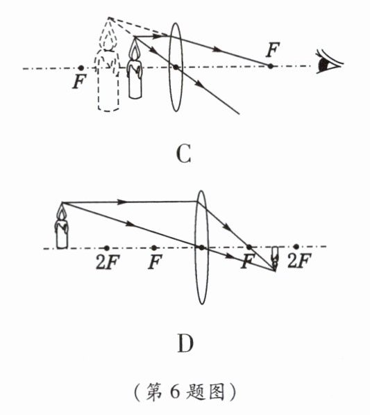 6. 许多同学利用假期读万卷书行万里路,并用照相机留下自己的足迹。下列图示能用来说明照相机成像原理的是(