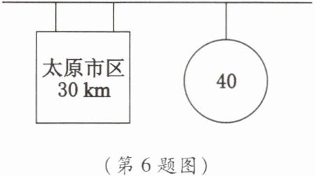 6. 暑假,小明一家去太原旅游,在某公路的十字路口,他看到如图所示的交通标志牌,汽车在遵守交通法规的前提下,从此标志牌处匀速到达太原市区最快需要