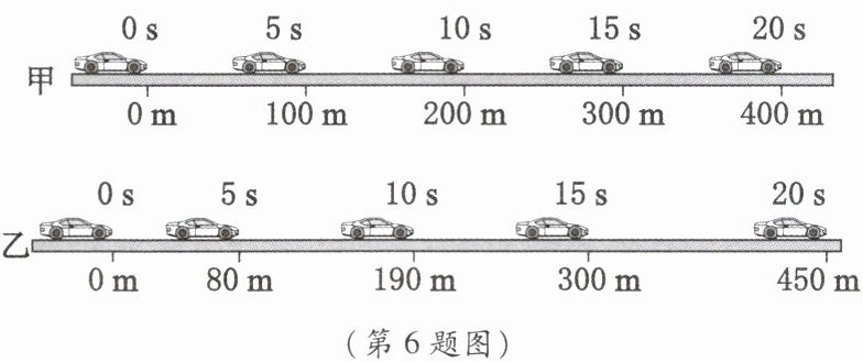 6. 如图记录了甲、乙两辆汽车在平直公路上行驶时,在某段时间内的运动过程。关于甲、乙两车的运动情况,下列说法正确的是(