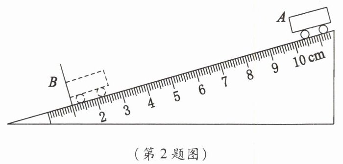 2. 如图所示,小明测量小车的平均速度时,在带有刻度的斜面底端B处放一金属片,让小车从斜面顶端由静止滑下,下列说法正确的是(