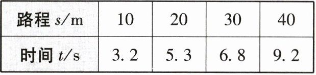 (3)从20 m处到40 m处所用的时间$t''=9.2\ s-5.3\ s=3.9\ s$,