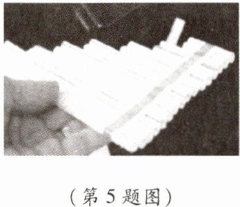 5. 排箫是中国古代的一种乐器,由长短不一的竹管制成。如图所示是某同学自制的简易乐器——吸管排箫,若他向其中的一根吸管内吹气,则吸管内的空气振动发出声音。根据演奏方式分类,排箫属于管乐器。若该同学更用力地吹这根吸管,则声音的