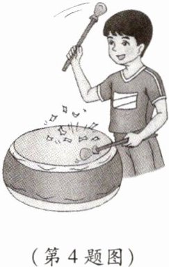 4. 鼓面上撒些碎纸屑,如图所示,敲鼓时,观察到放在鼓面上的碎纸屑也会跳动起来。这个实验说明发声的物体在