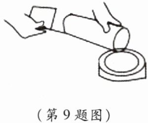 9. 小华将一根棉线与纸杯底部相连,随后用被水浸湿的纸片摩擦这根棉线(如图),这个过程中小华听到纸杯发出了类似母鸡叫声的声音。关于这个小实验,下列说法正确的是(