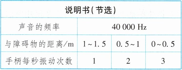 m。根据表中信息推断此时导盲杖手柄每秒振动2