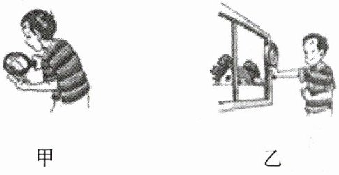 的像;然后再用它观察远处的房屋(图乙),看到房屋成缩小