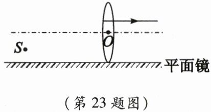 23. 如图所示,从S点发出的一条光线经平面镜反射后,再经凸透镜折射,折射光线平行于主光轴射出。请画出从S点发出的入射光线。