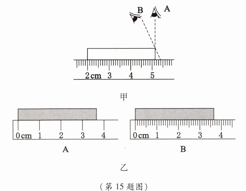 cm。(3)图乙中,用A、B两把刻度尺分别测量木块的长度,其中用