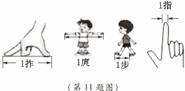 11. 人的身体中藏有很多“尺”(如图所示),可以帮助我们估测物体的长度。身高170 cm的小明,利用自己的身体特征进行了以下估测,其中最接近实际的是(