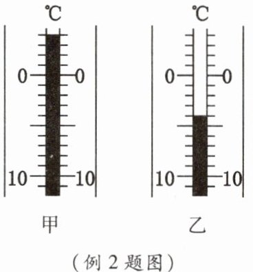 例2 用同一支温度计分别测量当天正午与晚上的气温,两次温度计的示数如图甲、乙所示,其中图______是晚上的气温,其示数是______。