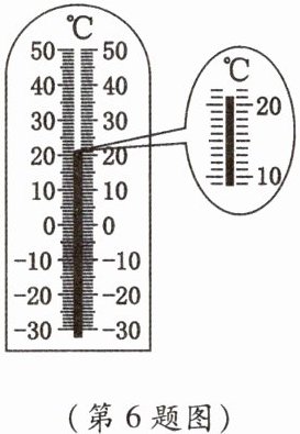 6. 妈妈对你说,今天降温了,看看墙上挂的寒暑表,自己选择合适的衣服。如图所示,关于该寒暑表,下列说法正确的是(