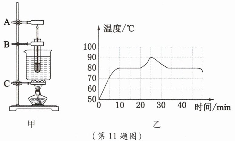 11. 图甲是观察物质熔化和凝固现象的实验装置,图乙是根据实验数据绘制的温度随时间变化的图像。下列说法正确的是(