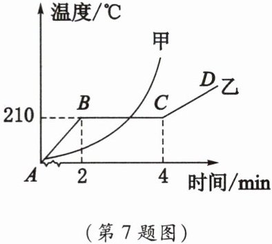 7. 如图所示为甲、乙两种物质温度随加热时间变化的图像,下列说法正确的是(