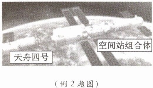 例2 如图所示,天舟四号货运飞船正在靠近由天和核心舱与天舟三号货运飞船组成的空间站组合体,即将完成自主交会对接。下列说法正确的是( )
