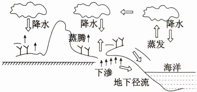 10. 我国是严重缺水的国家,水资源人均占有量是世界平均值的25%,是世界上人均水资源最贫乏的国家之一。了解地球的水循环知识,提高节水意识,培养良好的用水习惯,是我们每个公民的义务和责任。如图所示,关于地球的水循环,下列说法正确的是(