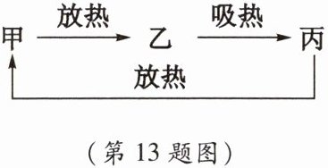 13. 固态、液态和气态是物质常见的三种状态。某物质通过放热、吸热在甲、乙、丙三种物态之间转化,如图所示。下列说法正确的是(