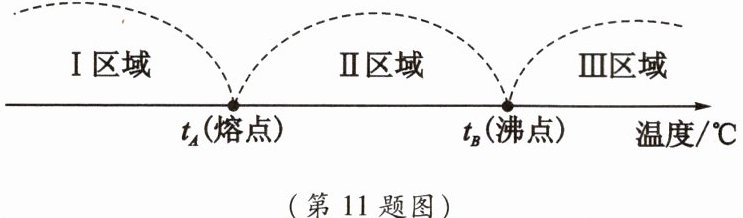 11. 如图所示,图中tₐ、tᵦ两点的温度分别对应的是某晶体物质的熔点和沸点,若该晶体物质由Ⅲ区域的状态变化为Ⅰ区域的状态时,则该晶体物质发生
