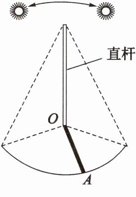 12. 暑假小明参加学校的生存夏令营,学到了野外生存的很多知识和技能,比如,用影子辨别方向。如图所示,将一根直杆竖直插在水平地面上的O点,中午前后,用描点的方法在地面上画出直杆的阴影顶端的运行轨迹,在轨迹上找出其中距O点最近的点A,则OA所指示的方向就是