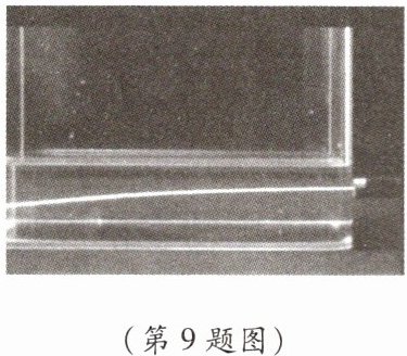 9. 盛水的玻璃水槽中倒入了较多的白砂糖,第二天,将一束激光射入水中,拍摄到如图所示的照片。