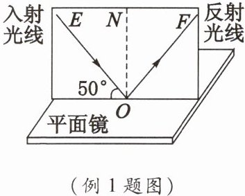 例 1 小王在家里将一个平面镜放在水平桌面上,再把一张可沿 ON 折叠的硬白纸板 ENF 竖直地立在平面镜上,以此来探究光的反射规律。通过测量他发现此时入射光线与平面镜成 50°,如图所示,则(