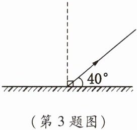 3. 一束光照射到平面镜上,反射光线与平面镜成 40°,如图所示。下列说法正确的是(