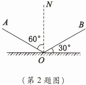 2. 小芳做“光的反射”实验时,作图记录实验现象,但没有标出光传播的方向(如图所示,ON 是法线)。下列判断正确的是(