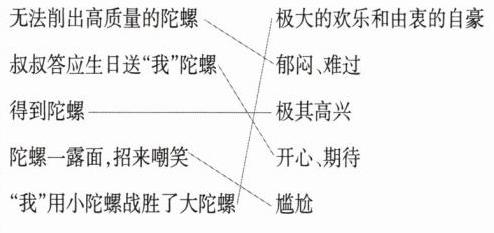 1. 陀螺在“我”的童年生活中,左右着“我”的喜怒哀乐,读完课文后根据课文内容连一连。