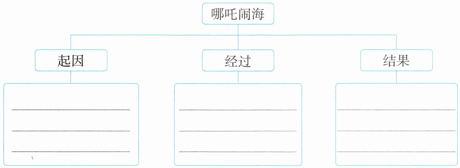 2. 用“______”画出哪吒闹海的原因,用“______”画出哪吒闹海的结果,完成思维导图。尝试根据思维导图讲讲这个故事。