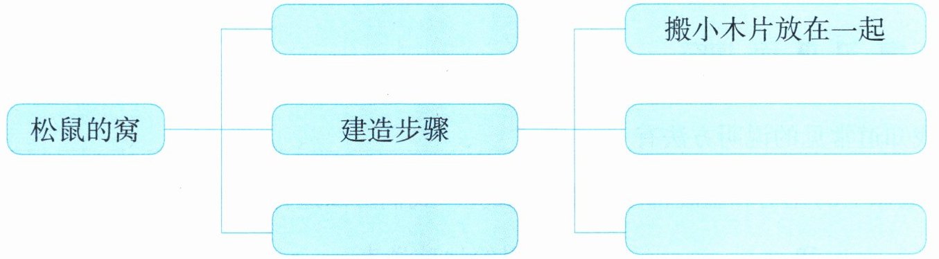 1. 选文围绕“松鼠搭窝”依次都介绍了哪些内容?补全下面的思维导图。