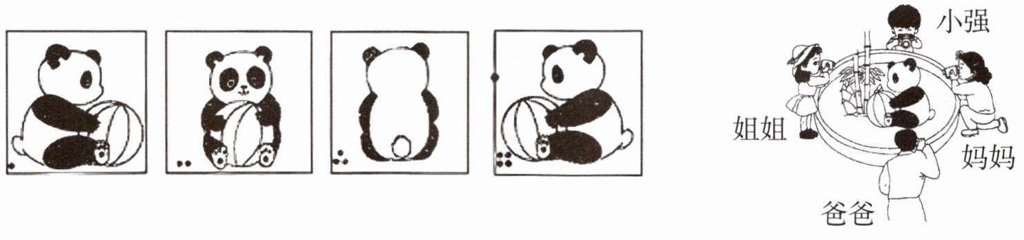 3. 小强和爸爸、妈妈、姐姐一起去动物园,他们在不同的位置给熊猫拍照片。你能帮助他们找到每张照片是谁拍的吗?