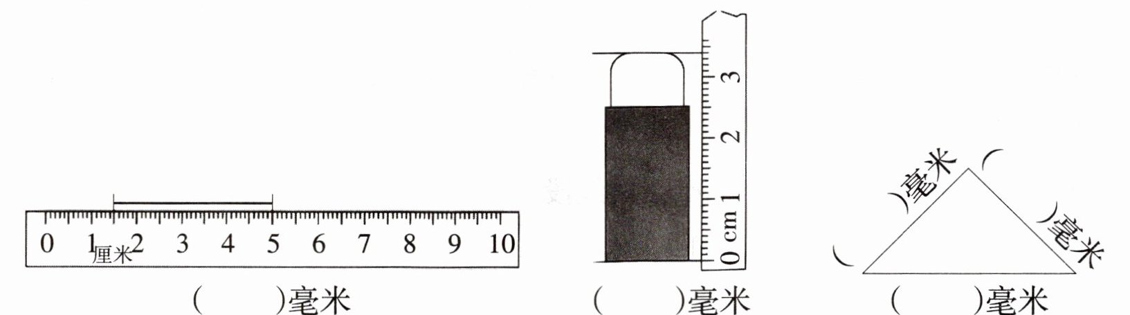 我们学过的长度单位有米和厘米,1厘米中间的每一个小格的长度是1(