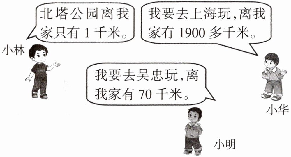 答:小林可以选择步行,大约需要15分钟左右;小华可以选择乘坐飞机,大约需要2个小时多;小明可以选择乘坐汽车,大约需要1个小时左右。