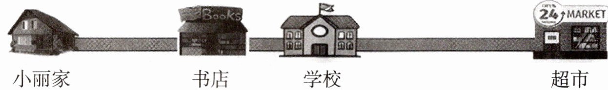 4. 小丽家到学校有2500米,到超市有5000米。书店到超市有4000米。
