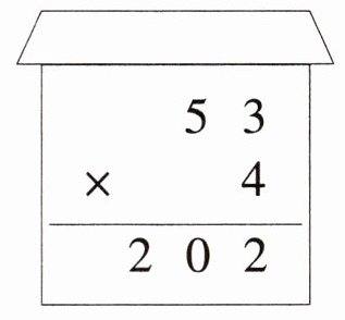$\begin{array}{c@{}c@{}c@{}c}& 5 & 3 \\× & & 4 \\\hline& 2 & 0 & 2 \\\end{array}\\ $