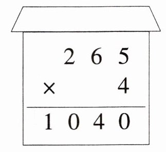 $\begin{array}{c@{}c@{}c@{}c}& 2 & 6 & 5 \\× & & 4 \\\hline& 1 & 0 & 4 & 0 \\\end{array}\\ $