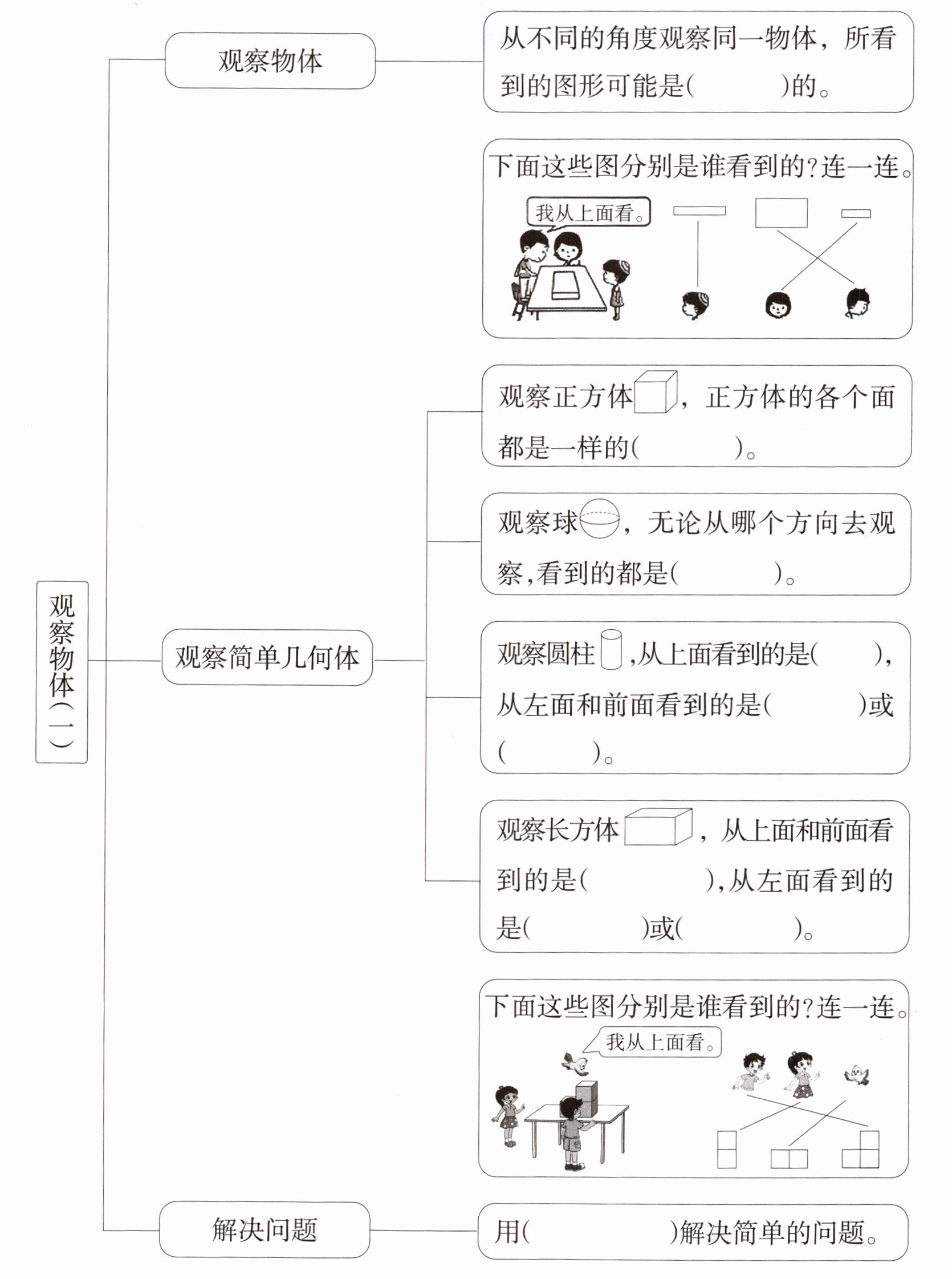 - 观察圆柱,从上面看到的是( ),从左面和前面看到的是( )或( )。