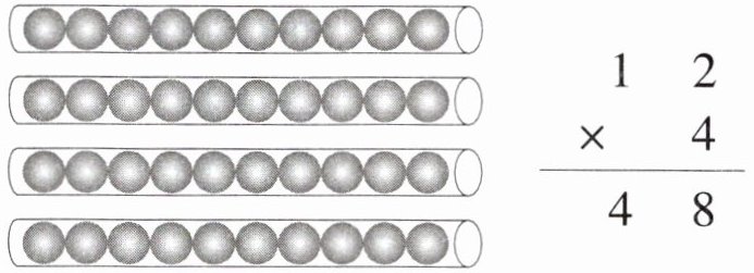 (3)请你在右图中圈出竖式“12×4”中“2×4”表示的意思,积中的“4”表示的是( )个乒乓球。