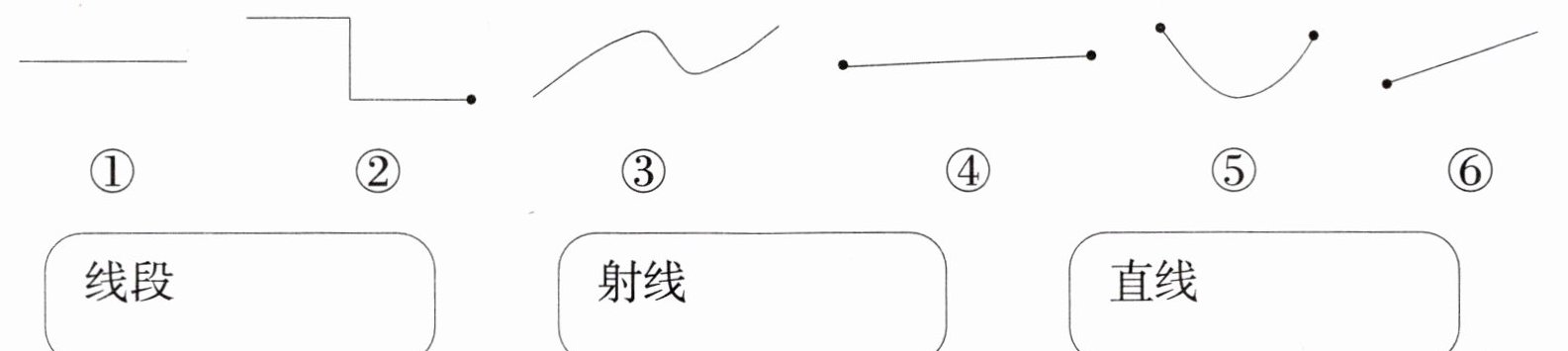 3. 请把下面图中的线段、射线、直线的序号填入相应的框中。