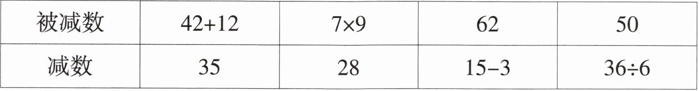|减数|35|28|15 - 3|36÷6|