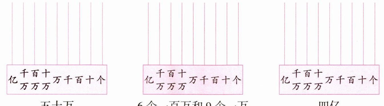 第三个数(四亿):四亿即400000000,在亿位上画4个珠子,其他数位无珠子。